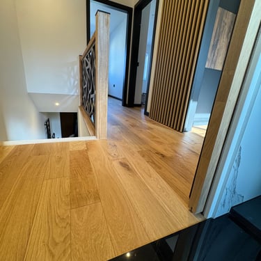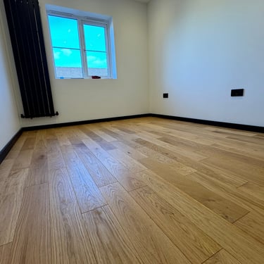 Professional installation of oak, laminate, and vinyl floors with skirting boards gives rooms elegance and a cohesive character.