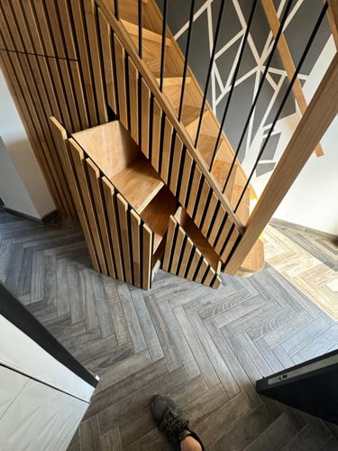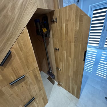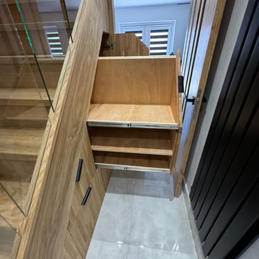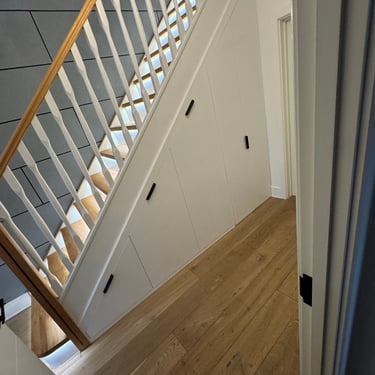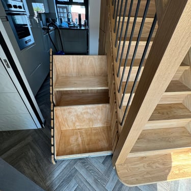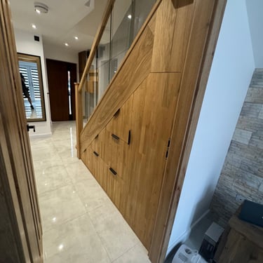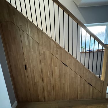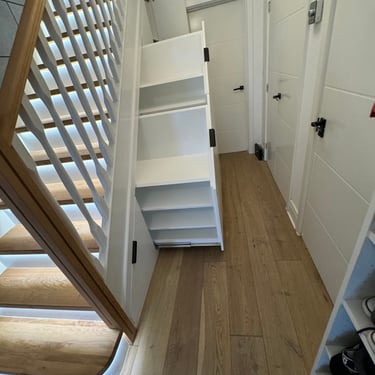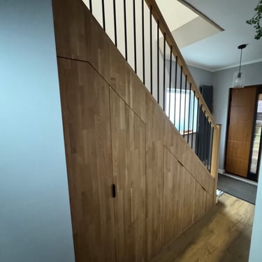 Under-stair storage with practical drawers and a large compartment is the perfect place for shoes, clothes, or household items. A solution that combines aesthetics with functionality and keeps your home organized.